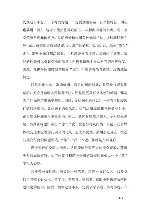 新闻标题的吸引力首先来自于它是否能迅速抓住读者的眼球。这就要求我们,在撰写标题时,必须紧跟时事热点,关注社会动态。比如,最近发生的重大事件、热门话题、公众人物的新动态等,都是我们选题的好素材。